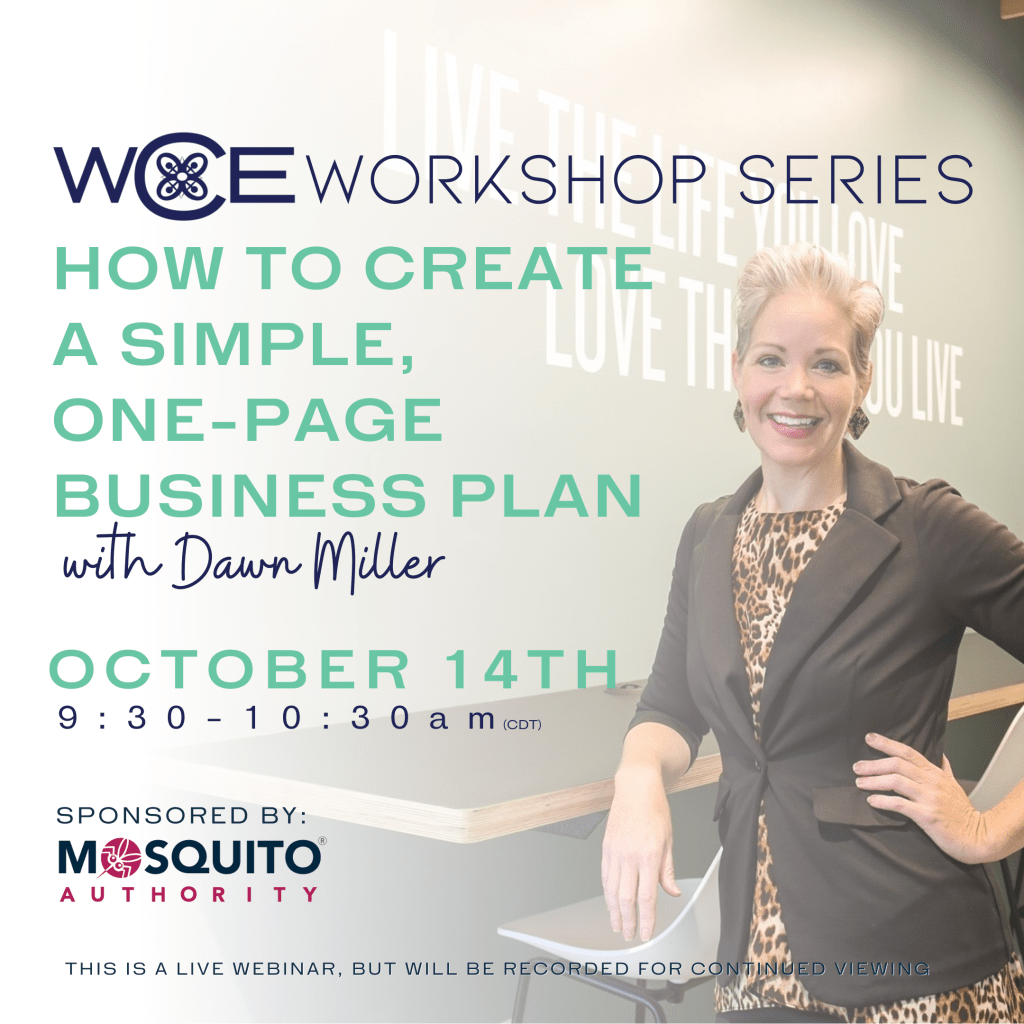 With all that said we realized we didn’t have anything for our WCE members and visitors to use to help them with their business plan! So, we knew we had to do a Virtual Workshop on it. On October 14, 2021, Dawn Miller will teach you how to create a simple, one-page plan for achieving success in business!