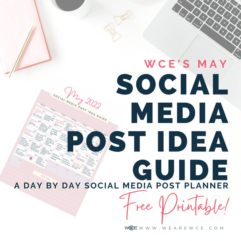 We can’t believe it’s the end of April 2022 already!!! Time flies by too quickly. We wish we could hold still the hands of time to be able to catch our breath a bit! But, since we can’t do that for you WCE is has created another Social Media Post Ideas Guide to help alleviate some stress from you.