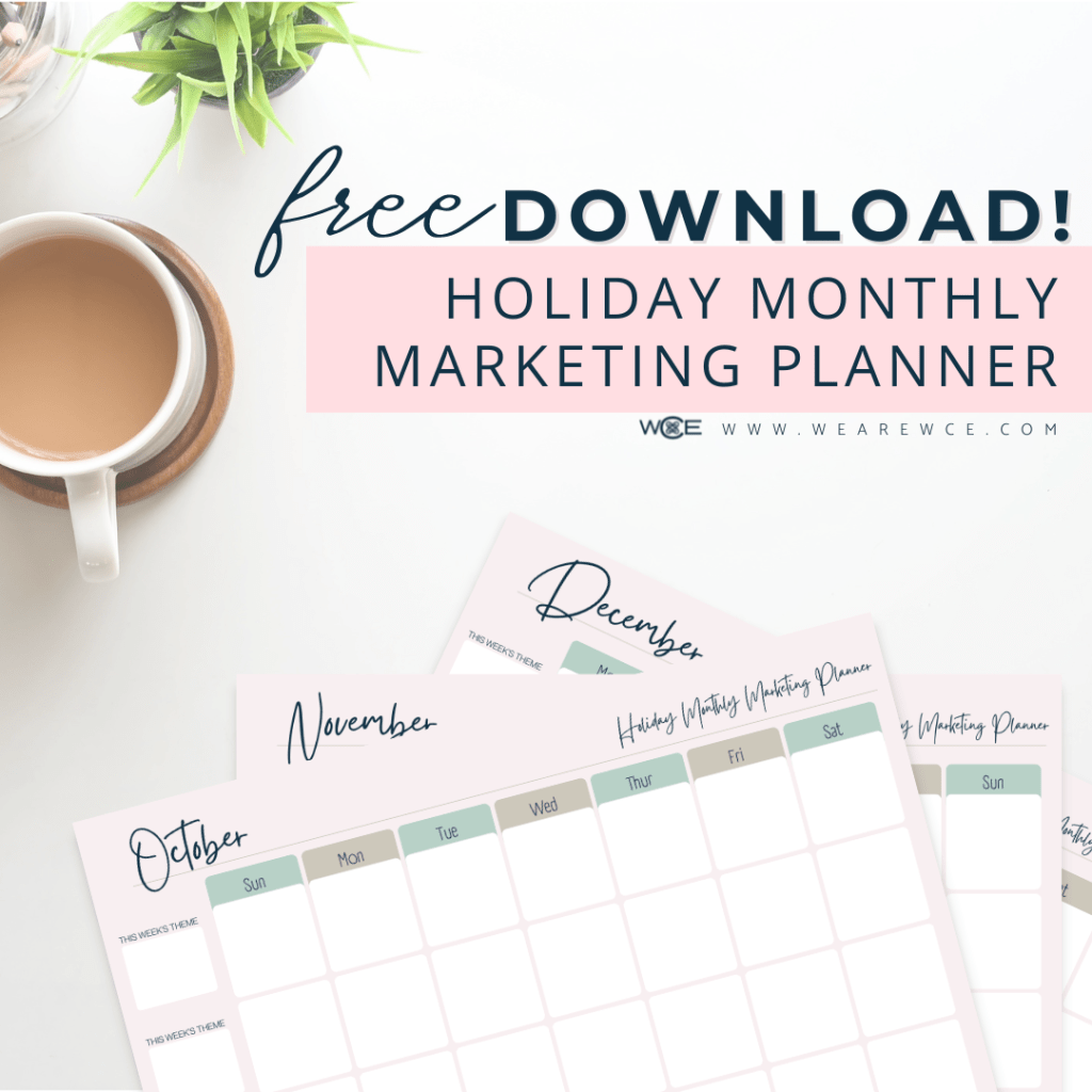 If you have been following WCE you may have noticed that we like to give you free printable downloads and resources as much as we can. Well, today is no different – We have designed a Holiday Monthly Social Media Marketing Planner for you! This download is super easy to use and will get you organized and focused so you can be ready to take on the Holiday Season. But, before we get ahead of ourselves we need explain how to use the planner so you can get the most out of the download.