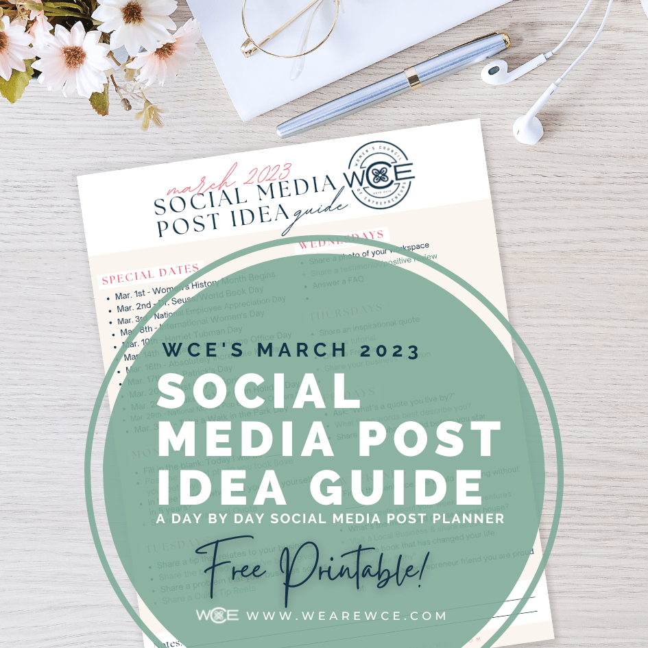 The Women’s Council of Entrepreneurs is proud to offer our monthly social media guide. This content-packed resource provides business owners with ideas for every day of the month, supporting their goals of success by lightening the load of social media management. As part of our commitment to serve entrepreneurs, we’re excited to announce that the March edition is now available! We hope this guide helps reduce stress and makes it easier for everyone to create exciting content for their social media channels.