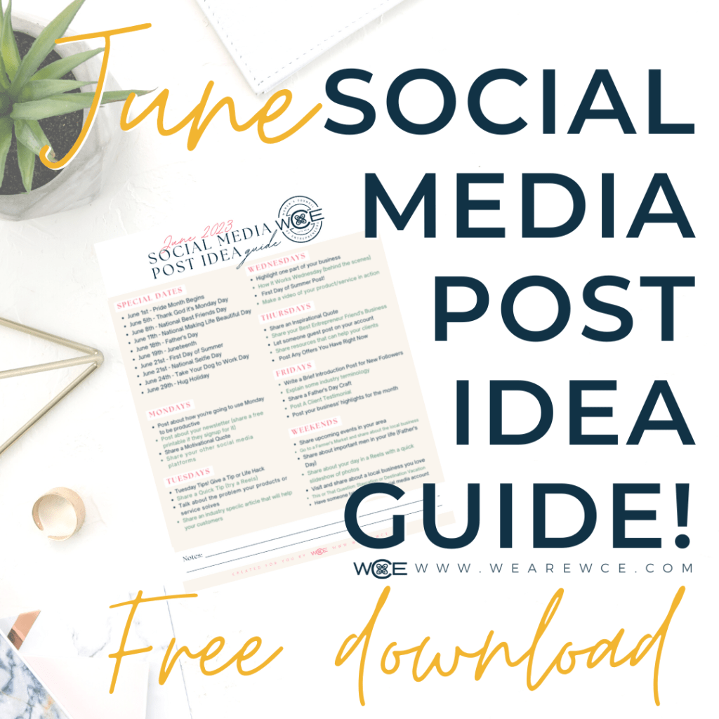 Because we know the stress of business ownership all too well every month WCE focuses on trying to help you with the task of social media by creating a Social Media Post Idea Guide. IT can be a struggle to come up with creative, relevant content for all of your business’s social platforms. Large corporations have a team of marketers who can dedicate time to developing meaningful and successful marketing campaigns. With WCE’s Monthly Social Media Post Idea Guide, you can get the same advantage without needing to add extra staff – totally free! And our June edition of the Social Media Post Idea Guide is ready to download.