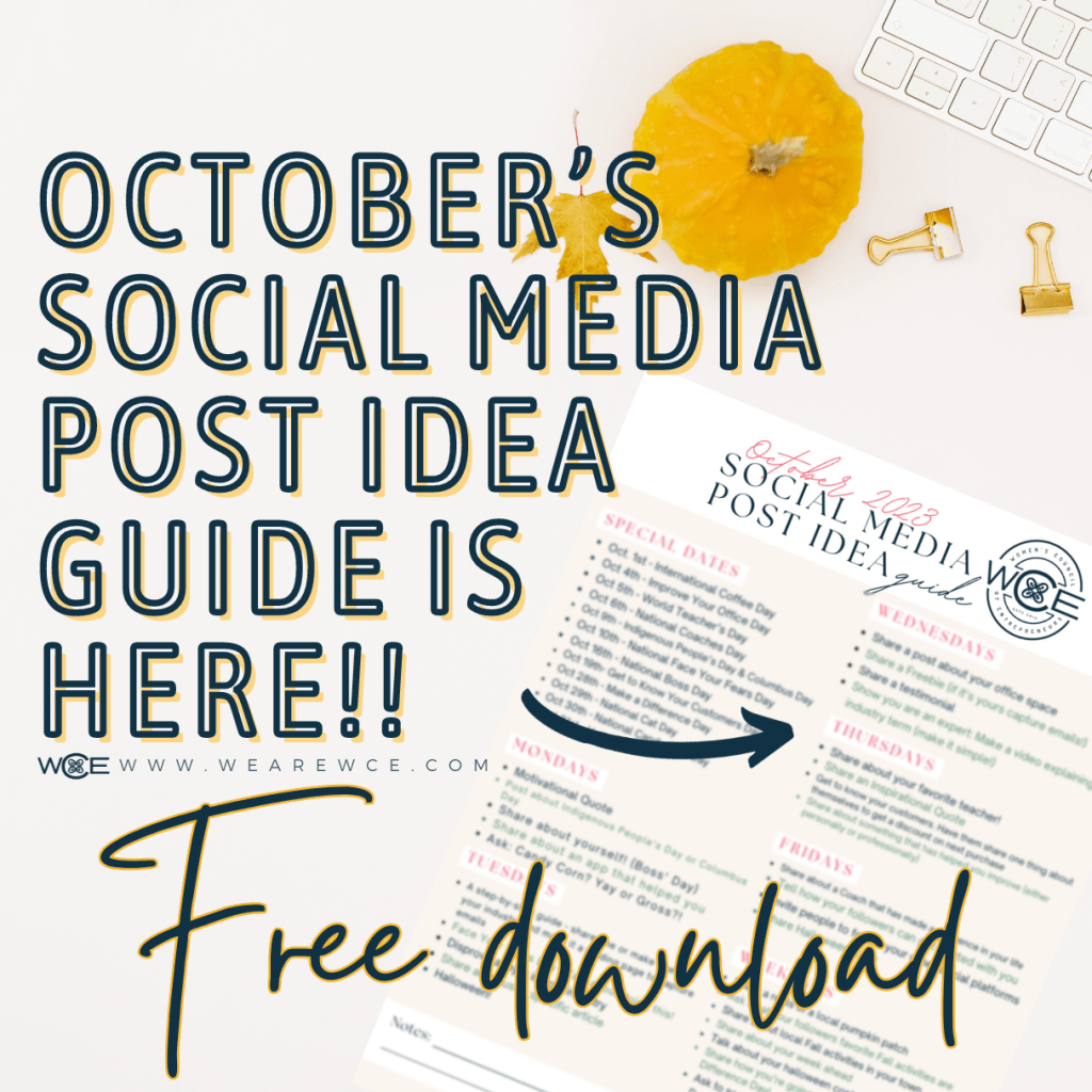In today’s digital age, social media has become a powerful tool for businesses to connect with their audience and boost their visibility. However, managing social media accounts can be overwhelming, especially when you want to stay up-to-date with special dates, engage your audience, and boost your online presence. That’s why Women’s Council of Entrepreneurs offers a monthly social media guide that comes with a month’s worth of content ideas. Our goal is to make social media management easier for busy entrepreneurs like you! We’re excited to announce that the FREE October edition of our social media guide is now available to download!