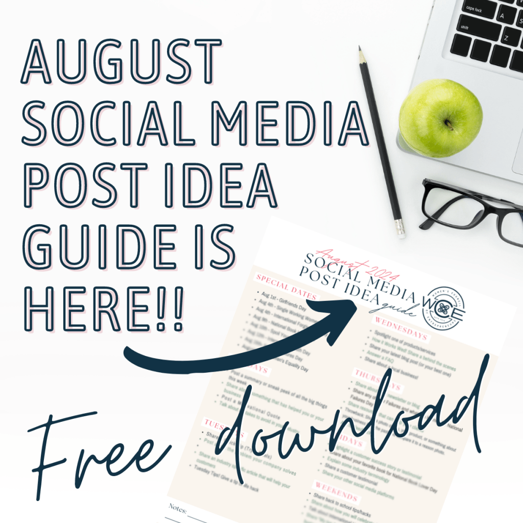 August is almost here, and summer is in full swing! We know you’d rather be enjoying the sunshine with friends and family (especially before school starts) than dealing with the details of managing your small business’s social media. That’s why Women’s Council of Entrepreneurs has your back! We’ve created an August Social Media Post Idea Guide specifically for small business owners and entrepreneurs, designed to make your social media planning effortless.