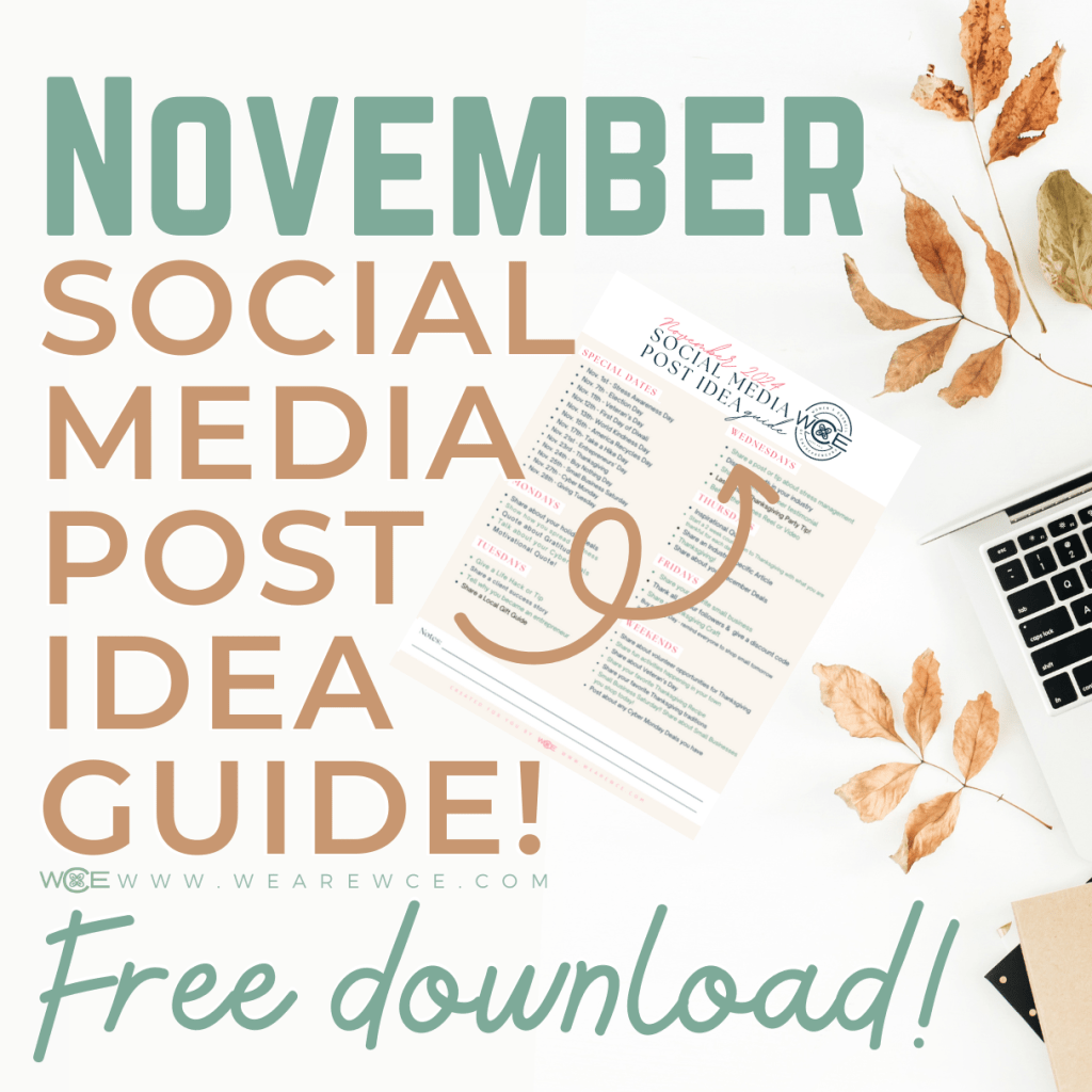 Ready to get started? Download WCE’s November Social Media Post Idea Guide for FREE by clicking the button or photo below!