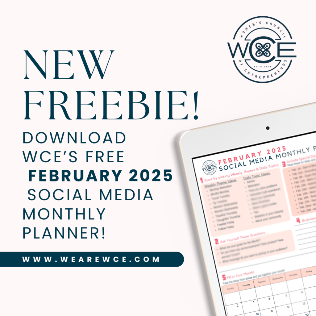 Running a small business comes with a long list of responsibilities, and then managing social media can often feel like just another overwhelming task. That’s why the Women’s Council of Entrepreneurs (WCE) is here to help with the February 2025 Social Media Monthly Planner! This is a free resource designed to make social media management simpler and more effective for small business owners.